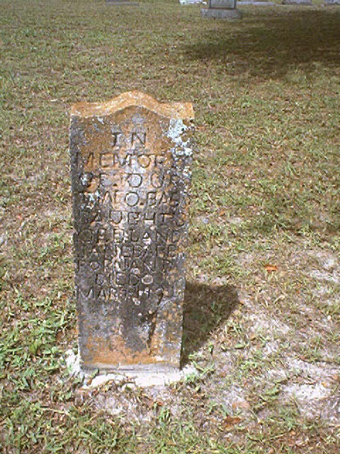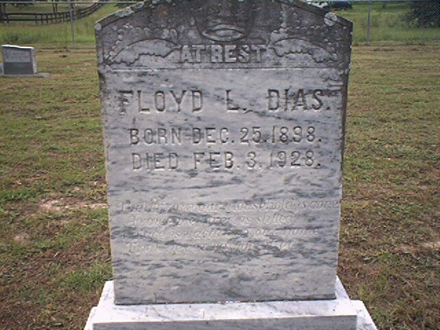 Directions: From intersection of Route 336 and 337 in Levy County, go Northeast on Route 337 to SE 125th Lane. Go East on SE 125th Lane .4 miles. Cemetery is on the left side of the road. File contributed for use in USGenWeb Archives by George Edison Creel, (georgeedisoncreel@earthlink.net). Notes: Data collected 12/28/2000. Many of the older tombstones were made by a person who could not write nor spell well. I have put a comment in parenthesis to confirm spellings that are on these tombstones, even though the spelling is obviously incorrect. The names Dyess & Dias are the same family, but the names are also spelled correctly. There is a story behind the different spellings. The one that is possibly spelled wrong is the Diass. There are 9 identifiable graves with illegible or missing tombstones. This is a private family cemetery.